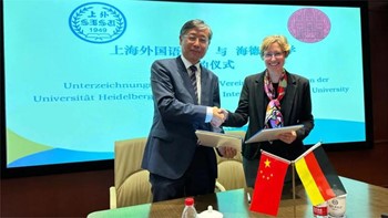 On August 4, Jiang Feng, council chair of Shanghai International Studies University (SISU) and Anja Senz, vice rector of Heidelberg University signed a new round of partnership agreement on behalf of the two universities. The agreement confirmed the further scientific research collaboration in fields, such as Eurasian studies, on the basis of the continuous support on partnerships in language teaching, Germanic language and literature, and Chinese language and literature, so as to increase faculty and student exchanges between the two universities.